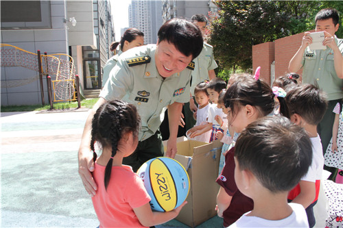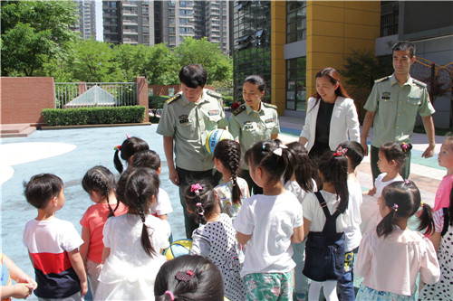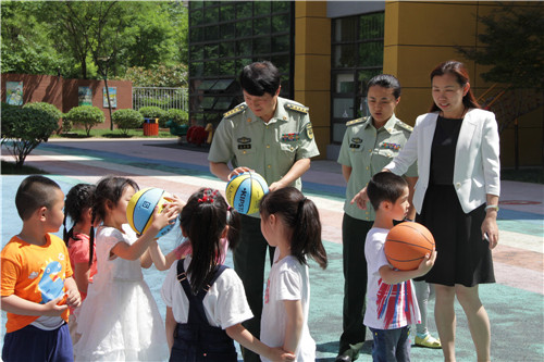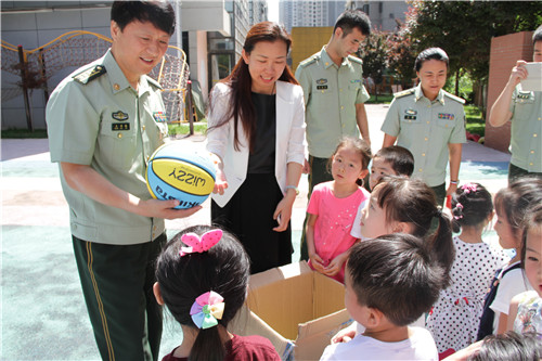 西安市第五保育院陈萍院长热情接待了警卫处一行人,在操场上和小朋友进行了现场互动,客人们被小朋友熟练的拍球技术所吸引,连连表示“宝贝们在五保老师的培养下,能够这样自如的拍球,真了不起,希望你们多多锻炼,把身体练得棒棒的”。