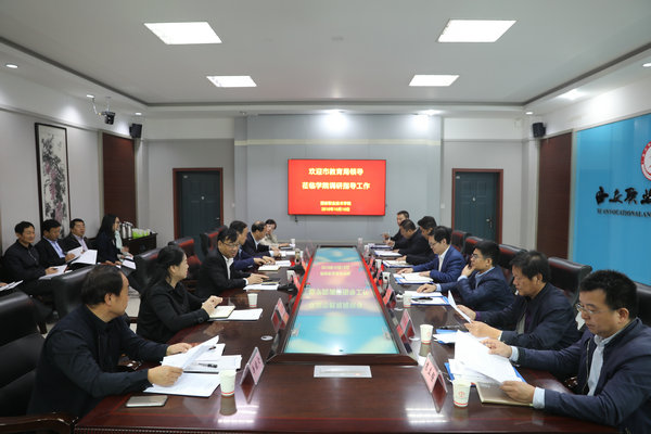 在随后召开的座谈会上,党委书记张理代表学院对市教育局领导来校调研指导表示热烈欢迎,并向市教育局就近期开展的主要工作进行了汇报。在市委、市政府和省市教育部门的正确领导下,学院全面深入贯彻党的教育方针,聚焦立德树人根本任务,积极推进教育教学改革,大力开展产教融合、校企合作,创新人才培养模式,加快改善办学条件,不断提升学院内涵建设,全面提高人才培养质量,取得了一定的成绩。同时,学院在新校区建设、教学基础设施建设、资金短缺、编制与师资队伍建设等方面存在一定困难。